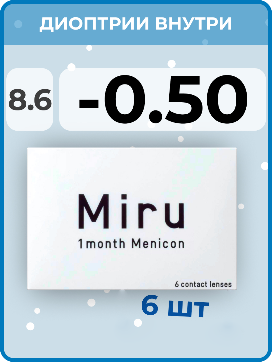 Купить Контактные линзы MIRU 1 Month Menicon Кривизна 8.6, Ежемесячные, -0.50/8.6, 6 шт
