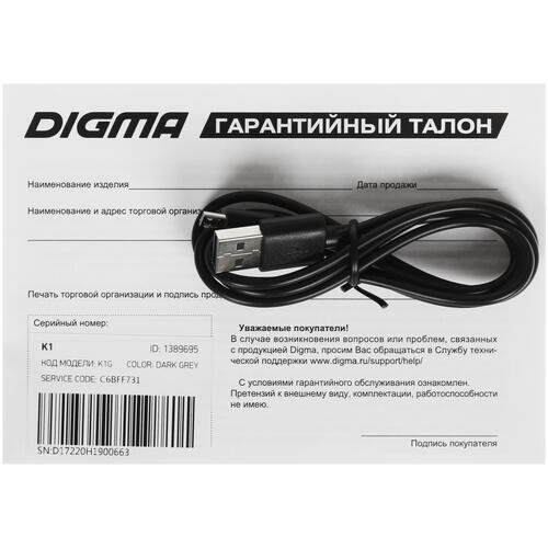 Digma K1 6" E-ink HD Pearl 758x1024 600MHz 128Mb 4Gb SD microSDHC темно-серый 1389695