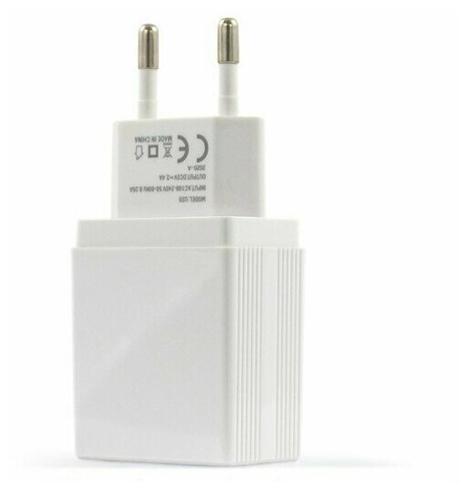 Сетевое зарядное устройство BYZ U20 EU, 2хUSB, 2.4 А, кабель microUSB, 1 м, белое