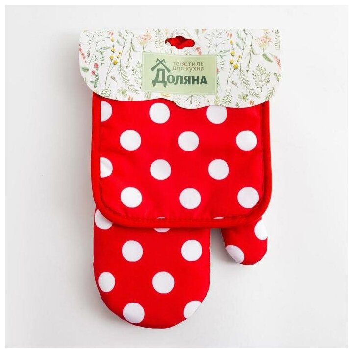 Кухонный набор (2 предмета) Доляна «Горох», цвет красный, прихватка 17х17 см, рукавичка 26х16 см, 100% п/э, материал полиэстер