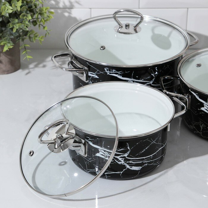 Купить Керченская эмаль Набор кастрюль «Чёрный мрамор», 3 шт: 1,9 л, 2,5 л, 3,7 л