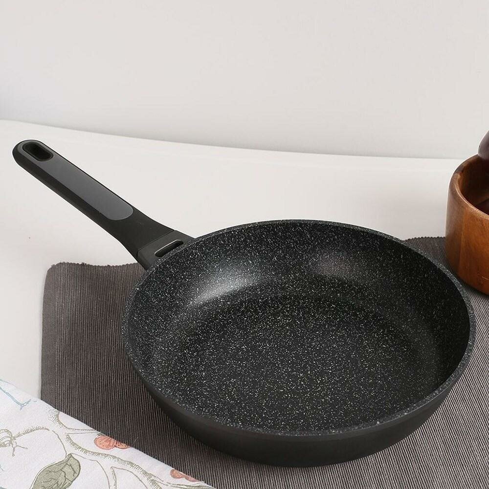 Сковорода снаружи и внутри черного цвета, но внутри имеются не яркие серо-белые вкрапления. Ручка не нагревается и очень удобно ложится в ладонь, не скользит. Это позволяет держать сковороду в одной руке, даже, если она наполнена продуктами. Покрытие просто отличное! К нему ничего не пригорает. Есть возможность готовить с минимальным количеством масла (или без масла). Наконец-то могу использовать свою любимую металлическую лопатку, когда что-то переворачиваю. Свойства покрытия при этом сохраняются. На индукционной плите работает очень хорошо. Нагревается равномерно. Сковороду мою в посудомоечной машине. Все прекрасно, никаких изменений. |