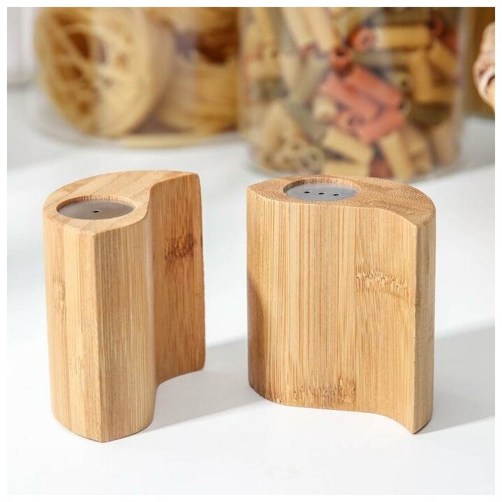 Набор деревянный для специй, 7×7см, 2 шт, солонка и перечница, бамбук
