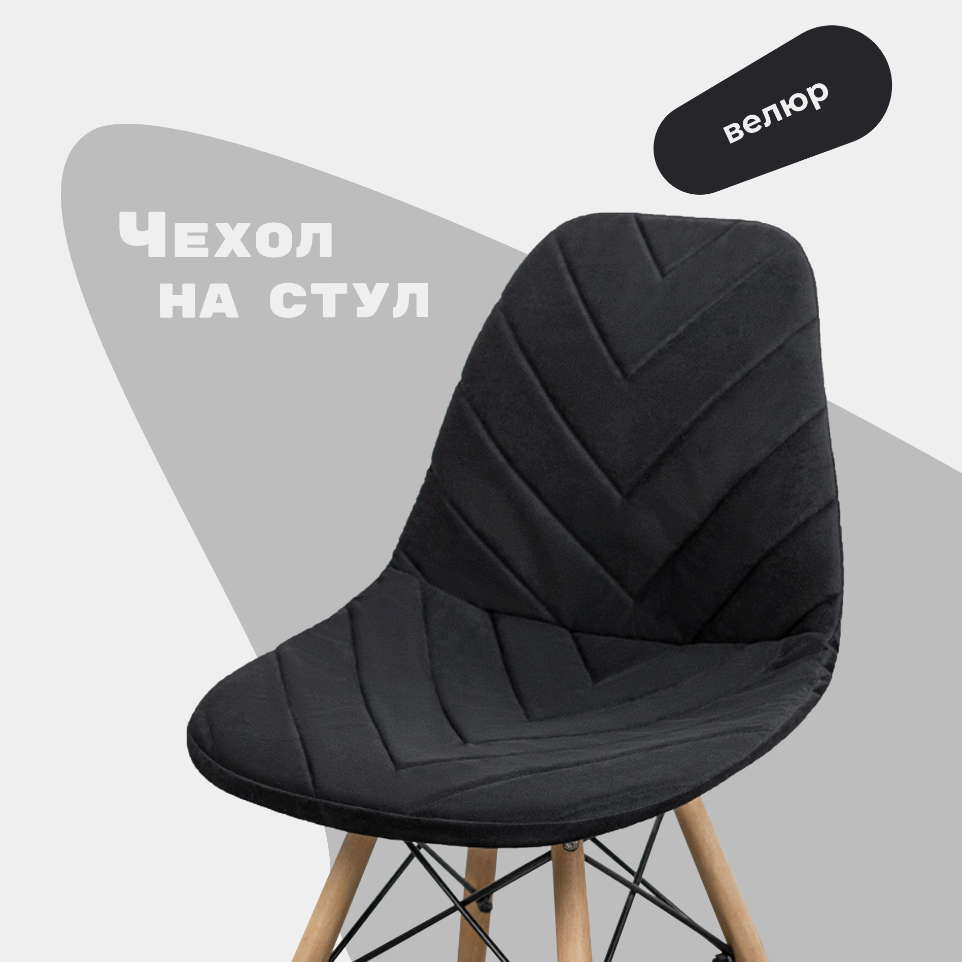 Купить Чехол на стул со спинкой Eames из велюра, 40х46см, черный
