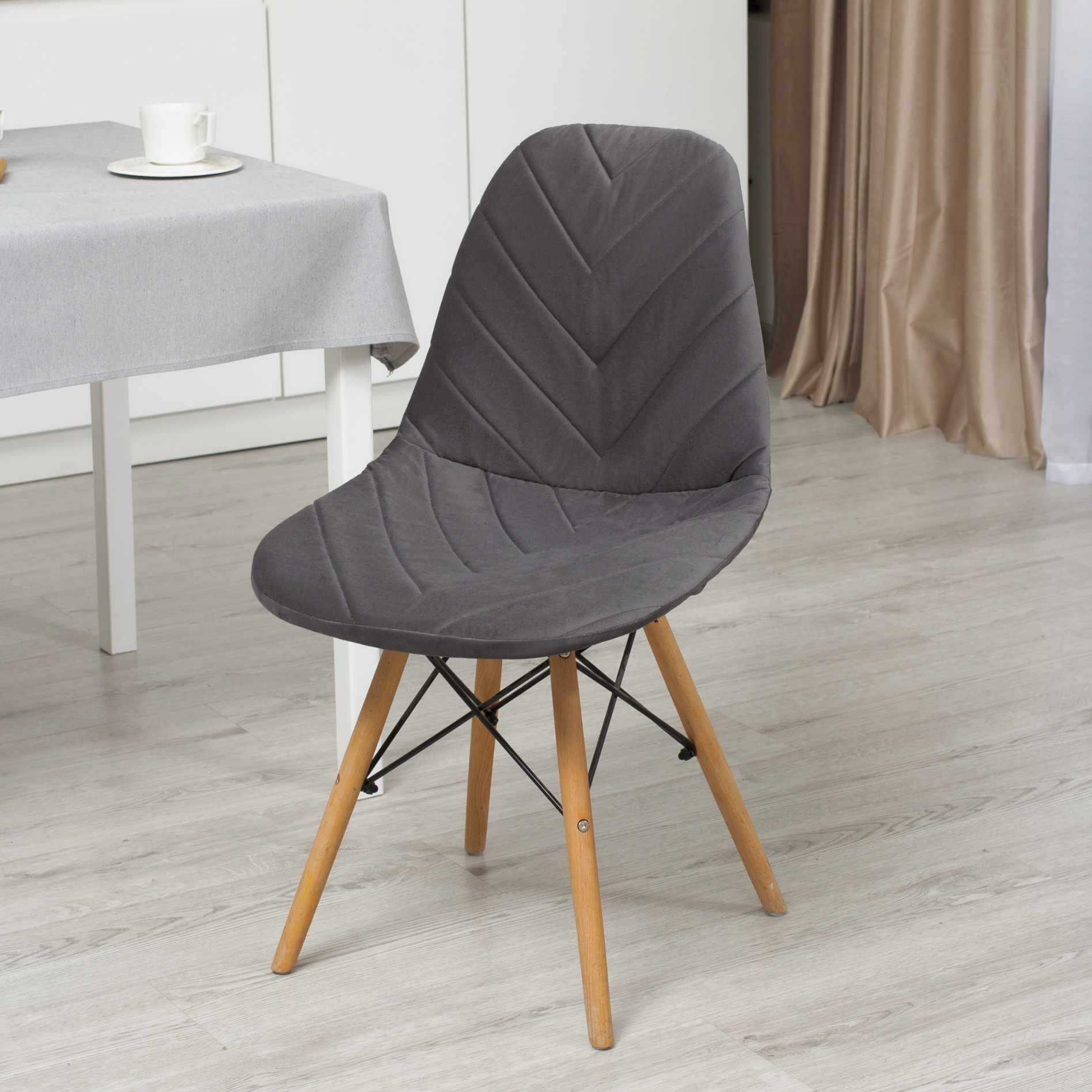 Чехол на стул со спинкой Eames из велюра, 40х46см, серый