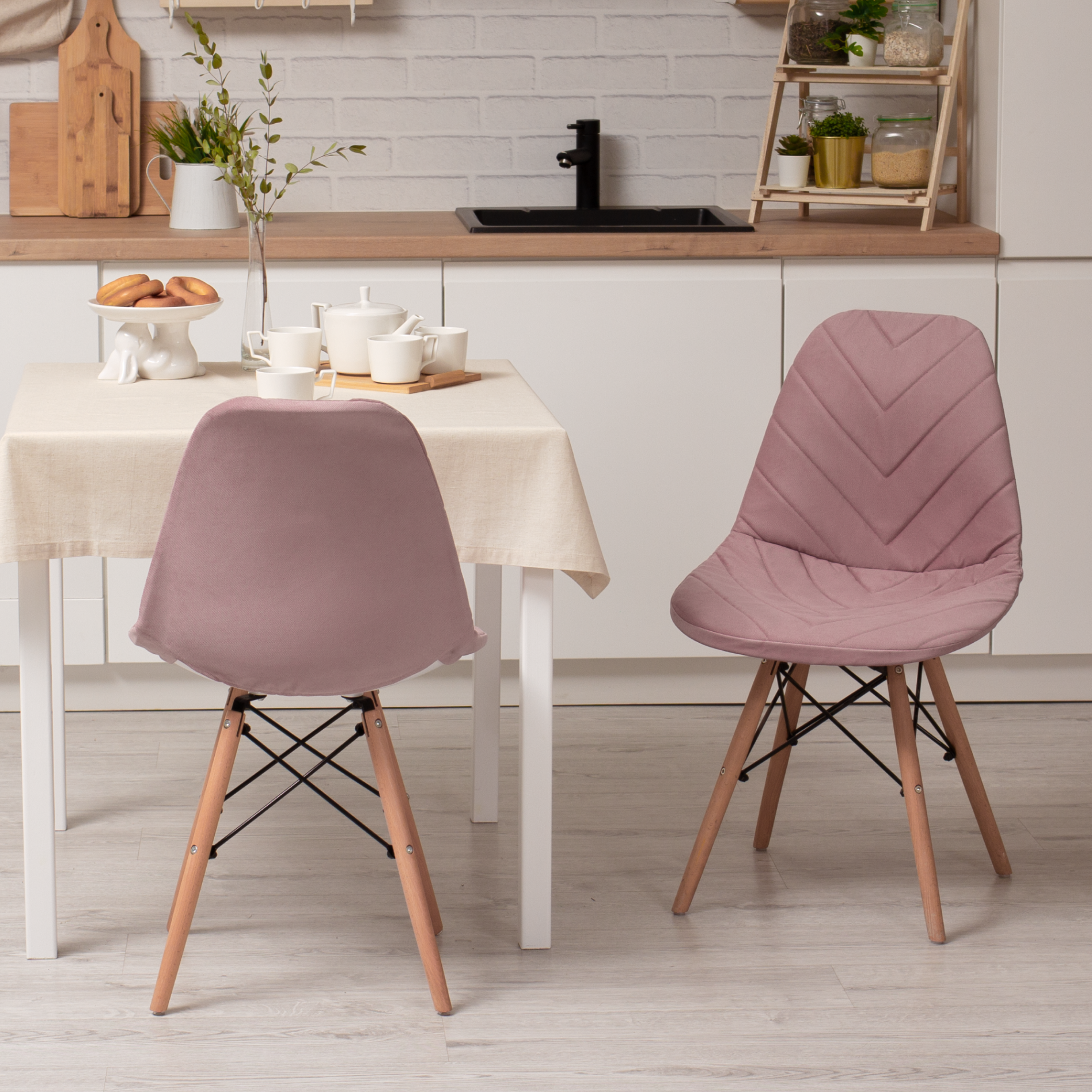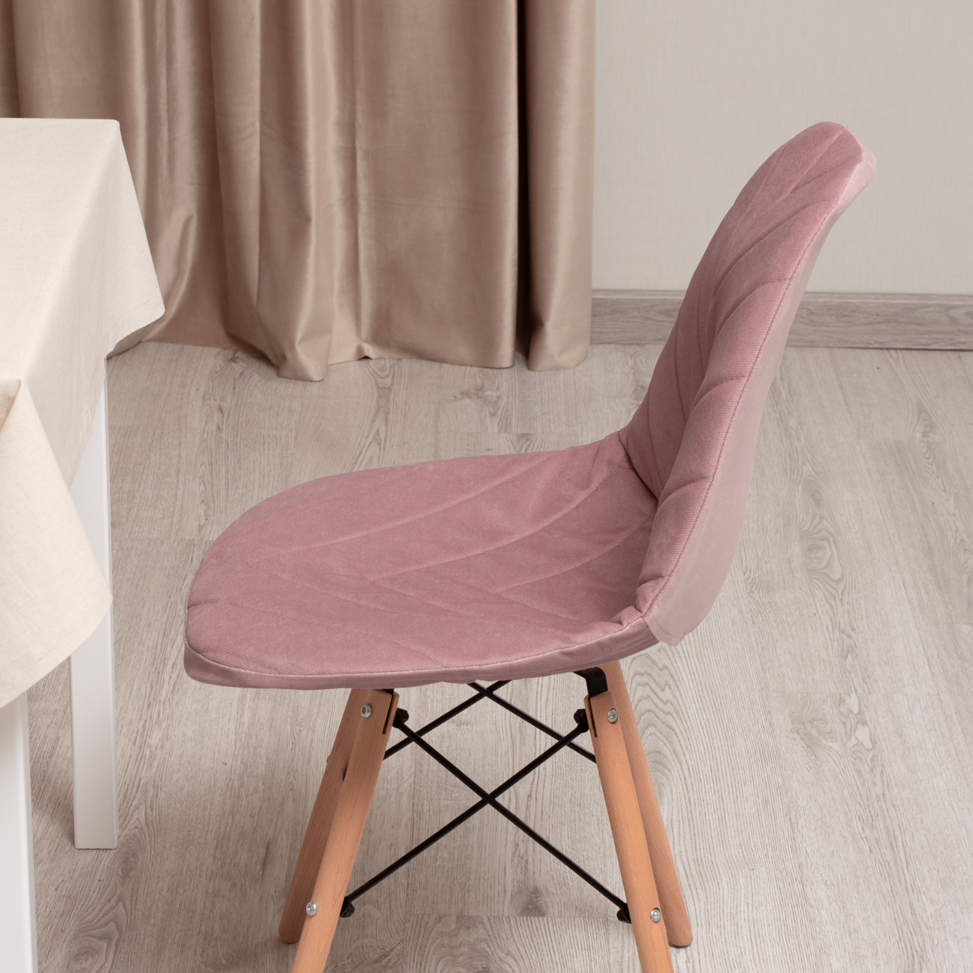 Купить Чехол на стул со спинкой Eames из микровелюра, 40x46 см, пыльная роза