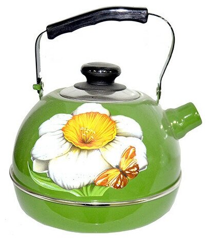 Чайник эмалированный со свистком 3,5л декор "Нарцисс" Зеленый ТМ04/35/07/07