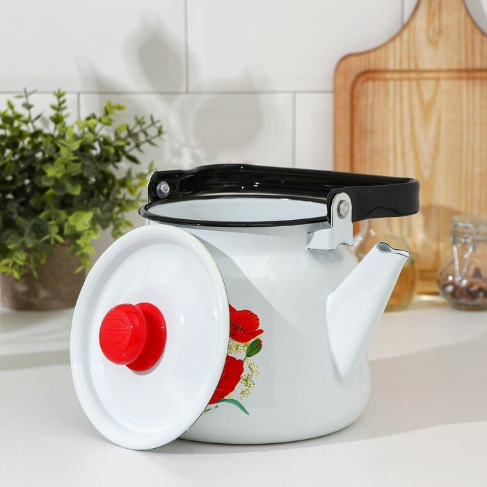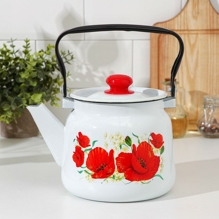 Купить Сибирские товары Чайник «Маки», 2,3 л, эмалированная крышка, индукция, цвет белый