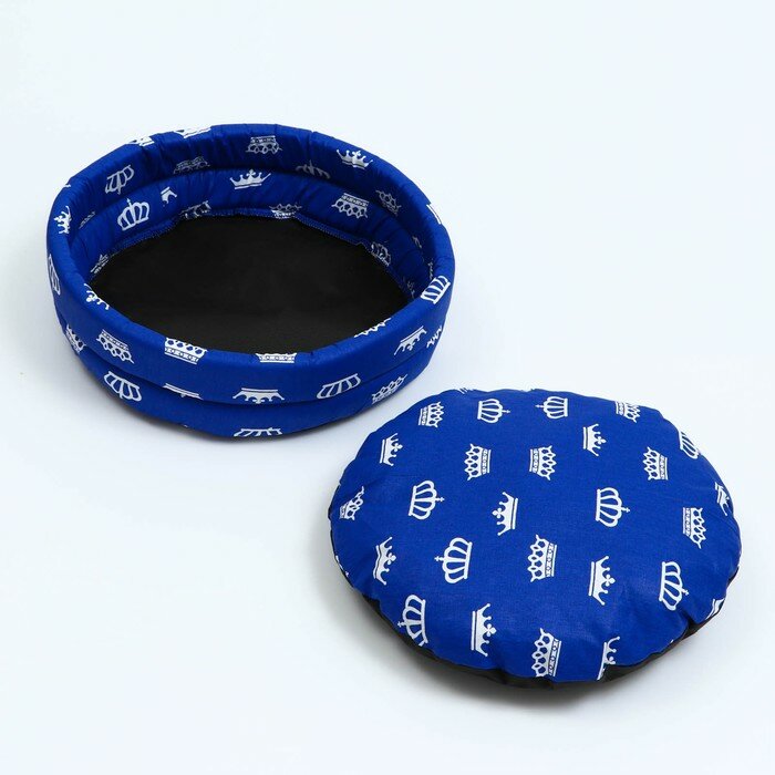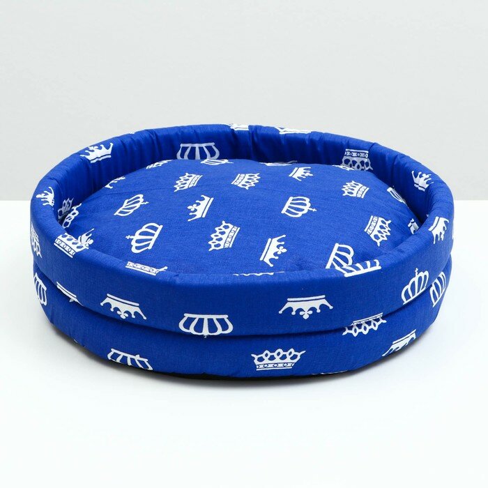 PerseiLine Лежанка Lowcost круглая, поплин, 40 х 40 х 12 см, синяя с коронами интересное: