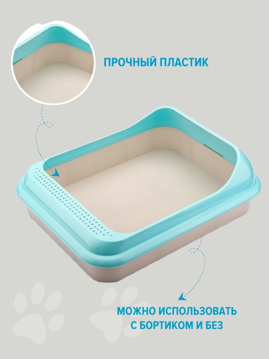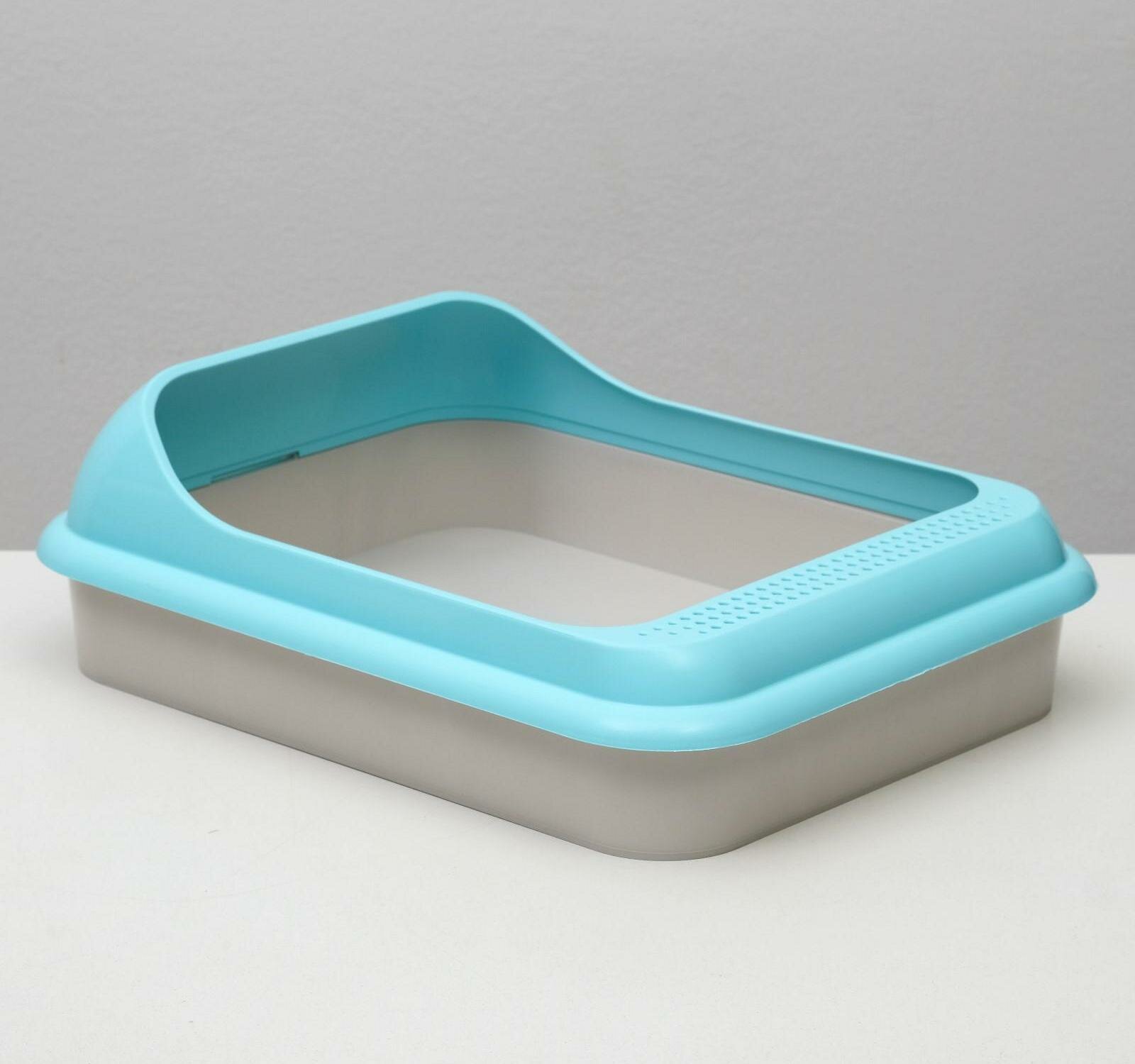 Лоток для животных Альтернатива Мур-мяу с рамкой, туалет для кошек с бортом, кошачий туалет, лоток для кошек, голубой