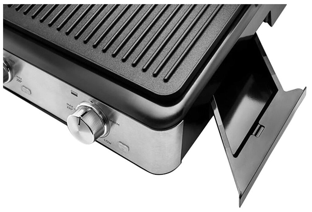 | Отзыв: | Лоток для сбора жира достаётся справа, что для меня было большим плюсом. Почему-то у большинства грилей он слева, а по расположению на моём столе это неудобно