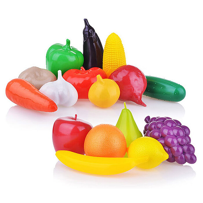 | Комплектация | корзинка, виноград, лимон, апельсин, банан, груша, яблоко, огурец, перец, морковь, свекла, кукуруза, картофель, баклажан, помидор, лук, чеснок |