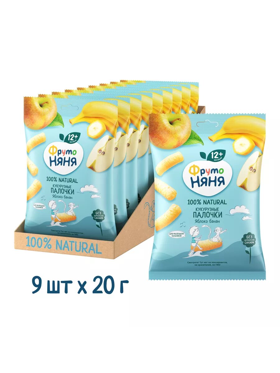 Палочки ФрутоНяня кукурузные яблоко-банан с 12 месяцев 20 г 9 шт