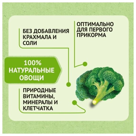 | Отзыв: | Первым мы вводили именно брокколи, по совету врача. Выбрала Heinz из-за понятного и простого состава, никакой соли и крахмала. Сейчас уже прошел месяц, съедаем целиком баночку, на очереди новый овощ. |