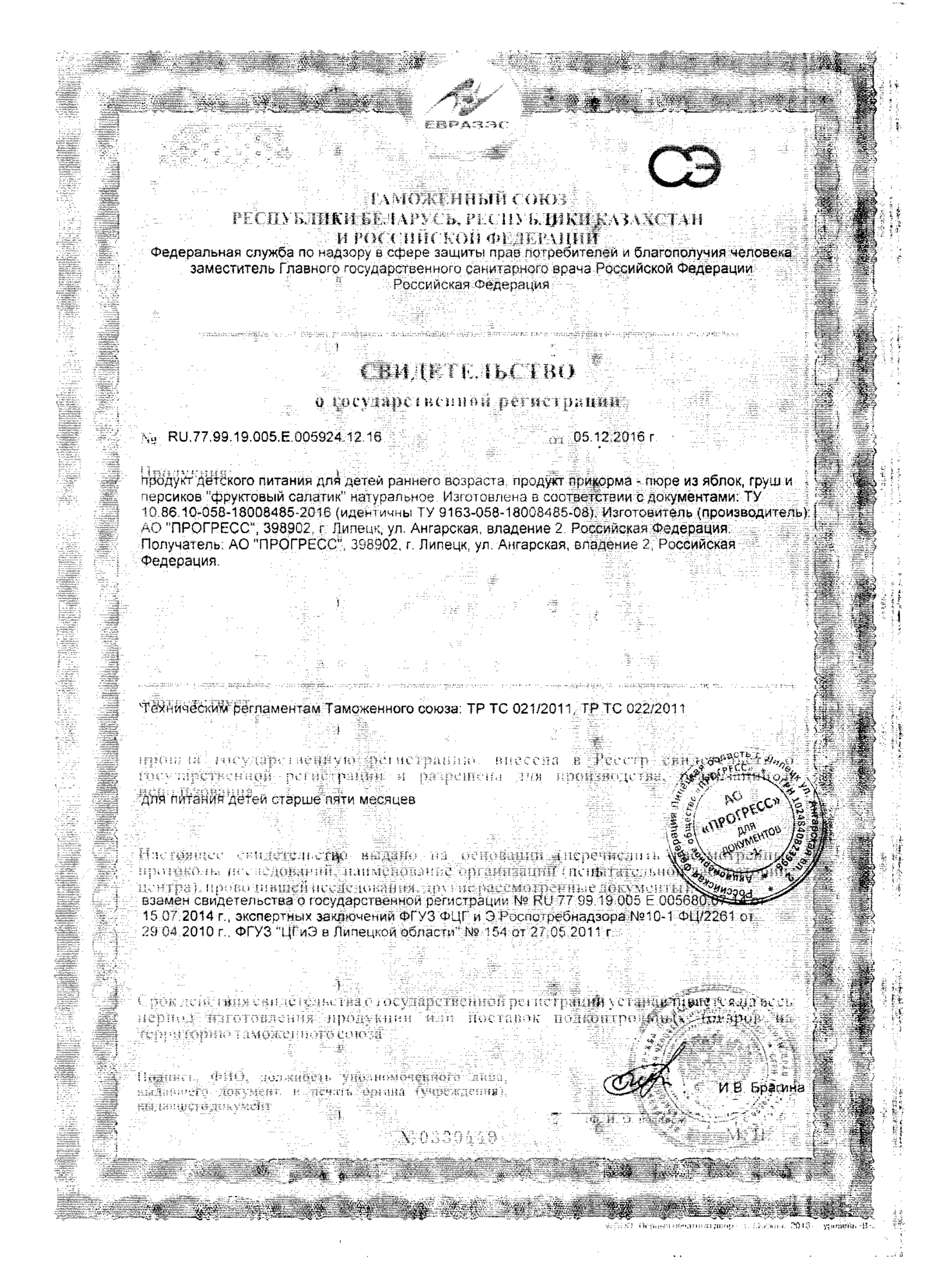 Пюре ФрутоНяня Фруктовый салатик яблоко-груша-персик с 5 месяцев 100 г