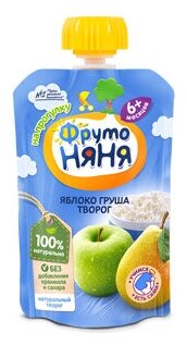 Пюре ФрутоНяня из яблок и груш с творогом, с 6 месяцев, мягкая упаковка, 90 г, 12 шт.