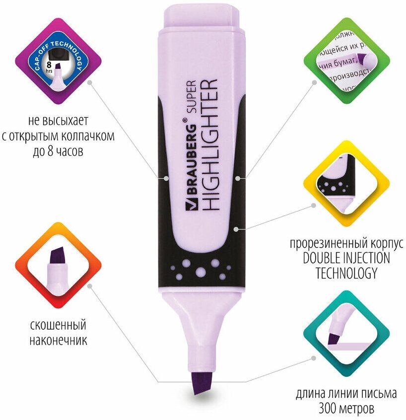 Текстовыделитель BRAUBERG «SUPER PASTEL», лавандовый, прорезиненный корпус, линия 1-5 мм, 151751
