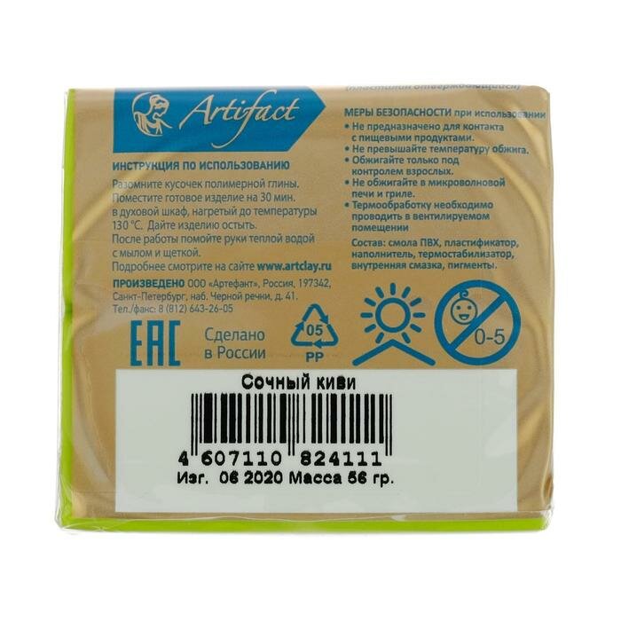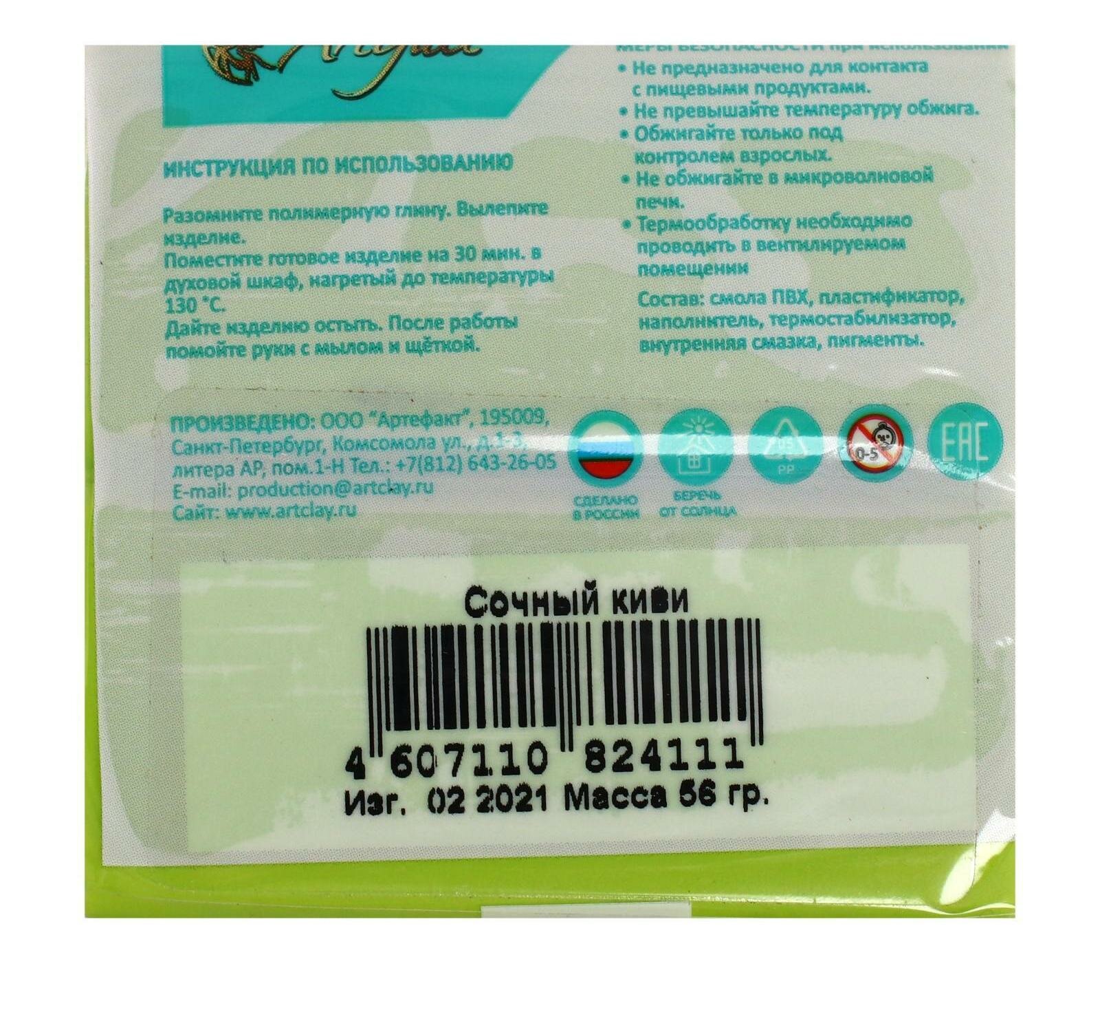 Пластика - полимерная глина, 56 г, "Цветочная коллекция", сочный киви интересное: