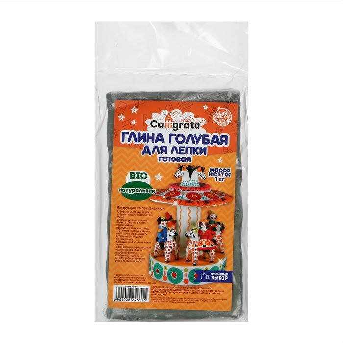 Calligrata Глина натуральная голубая для лепки, 1000 г, запекаемая, вакуумированная интересное:
