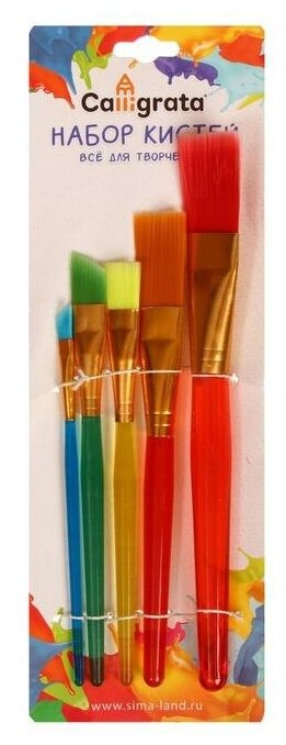 Calligrata Набор кистей, нейлон, плоские, 5 штук, «Радуга», большие