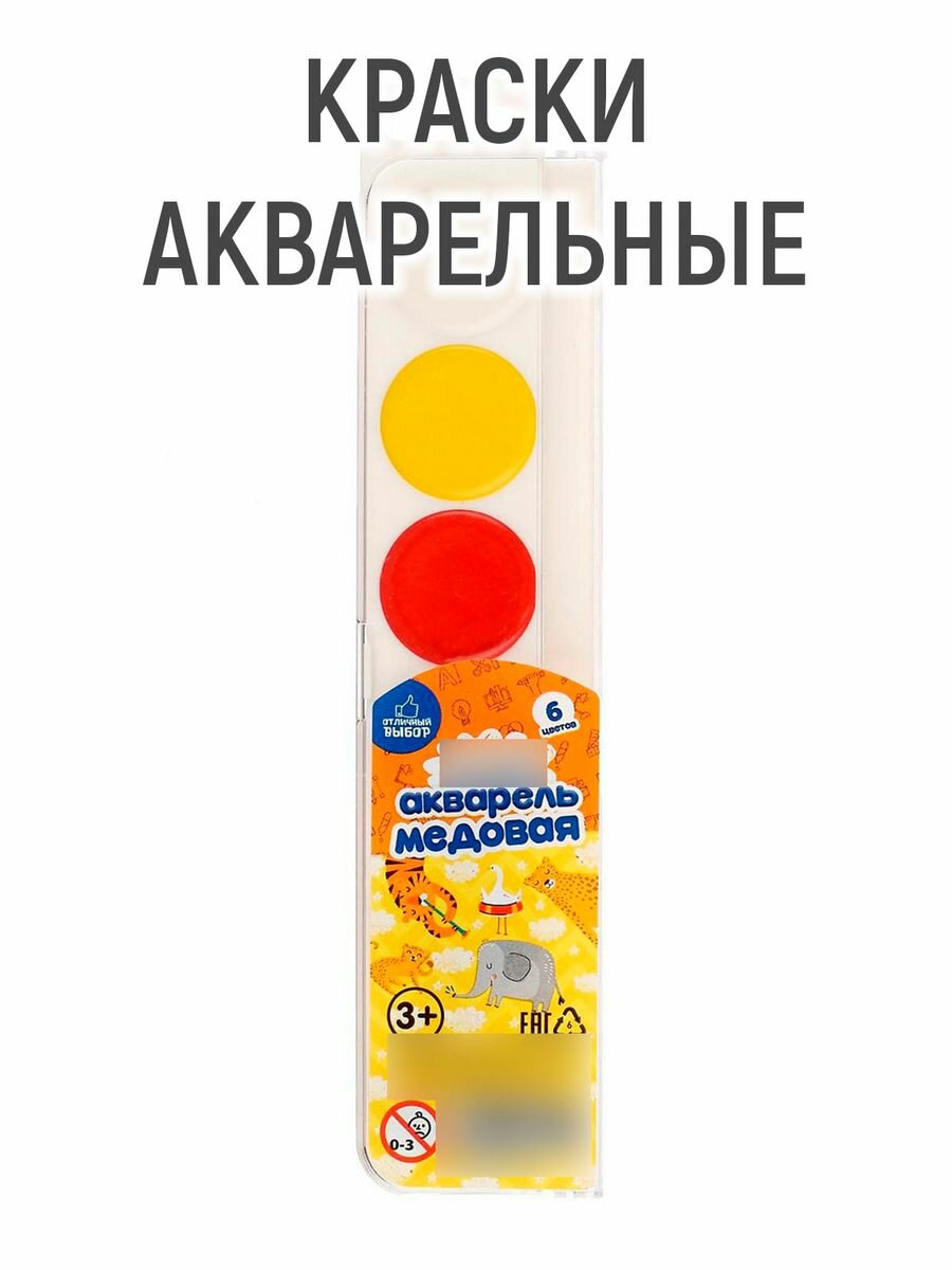 Акварель 6 цветов медовая, без кисти, пластик, 6 шт.