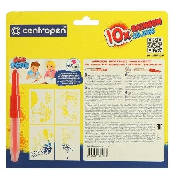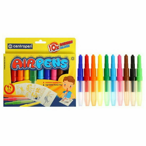 Купить Фломастеры воздушные Centropen AirPens Rainbow, 10 цветов, 4 трафарета, картонная упаковка 615001006