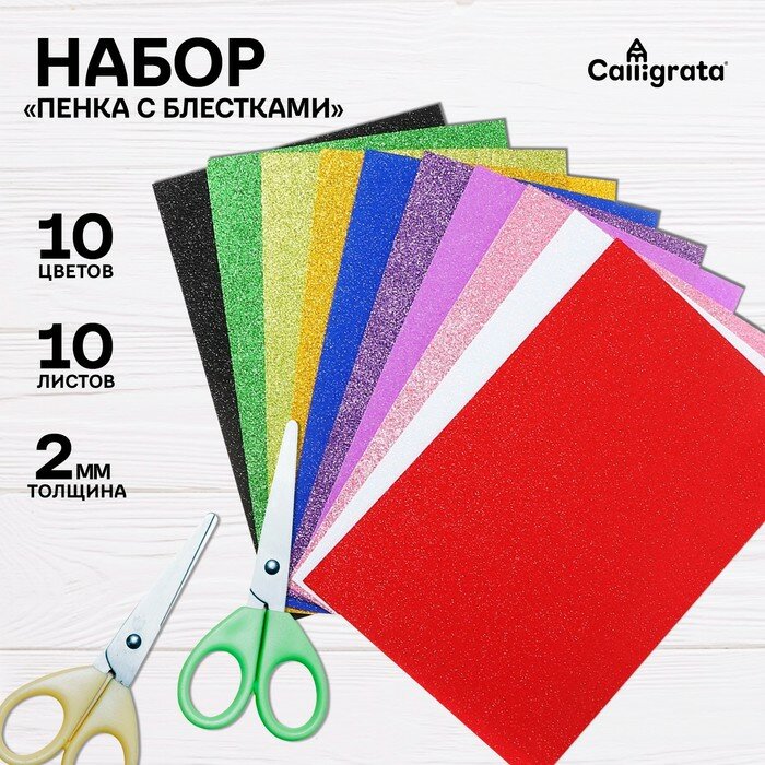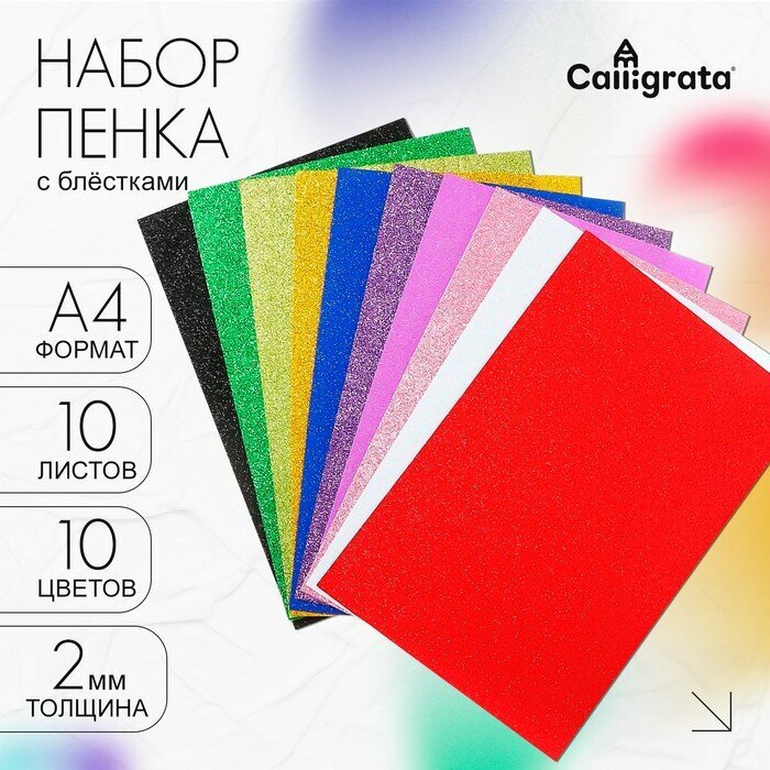 Calligrata Набор «Пенка с блёстками», формат А4, 10 листов, 10 цветов, толщина 2 мм
