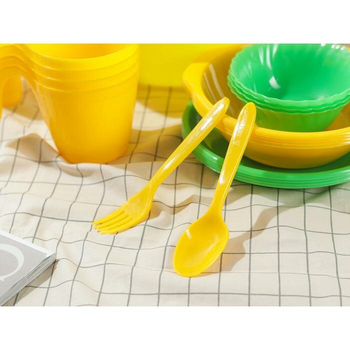 Комплект для пикника, 19 предметов на 4 персоны (Желтый)