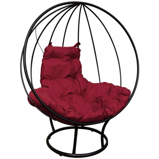 Кресло кокон M-GROUP "Круглое" стоячее без ротанга черное+бордовая подушка интересное: