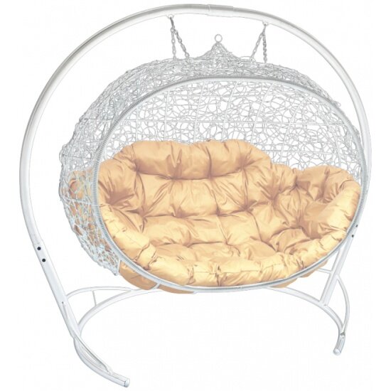 Подвесное кресло кокон M-GROUP Улей ротанг белый+бежевая подушка интересное: