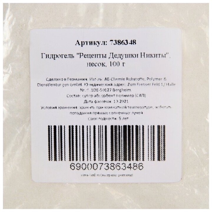 Купить Рецепты дедушки Никиты Гидрогель "Рецепты Дедушки Никиты", песок, 100 г