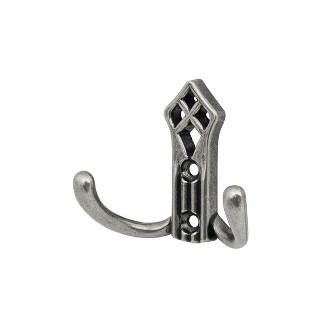 Купить Крючок мебельный настенный для одежды Aks PALAZZO двухрожковый античное серебро 1 шт.
