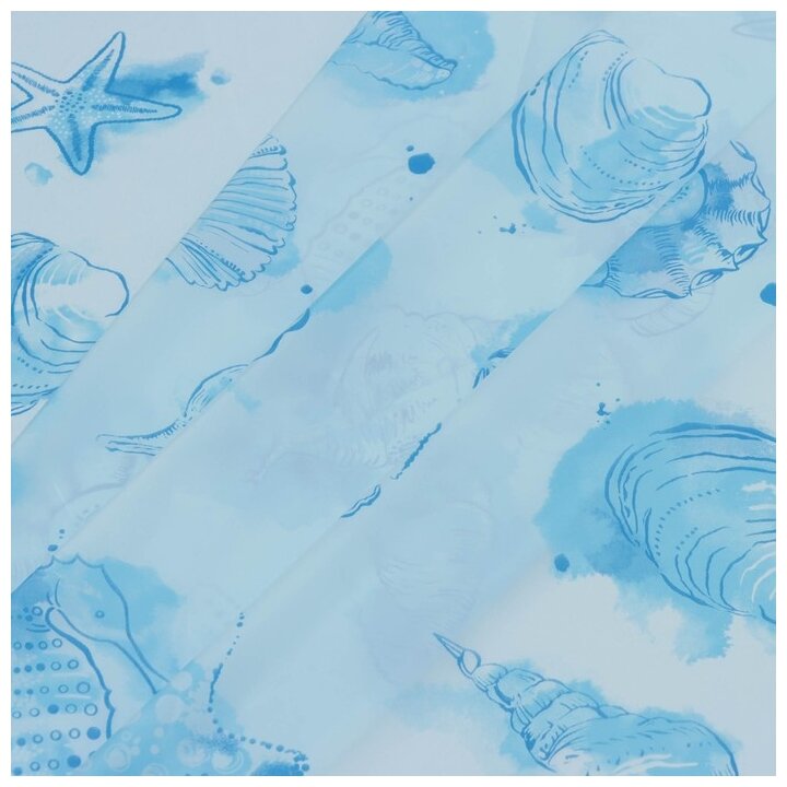 Штора для ванной комнаты VILINA водонепроницаемая полиэтиленовая 180х180 см Ракушки голубые