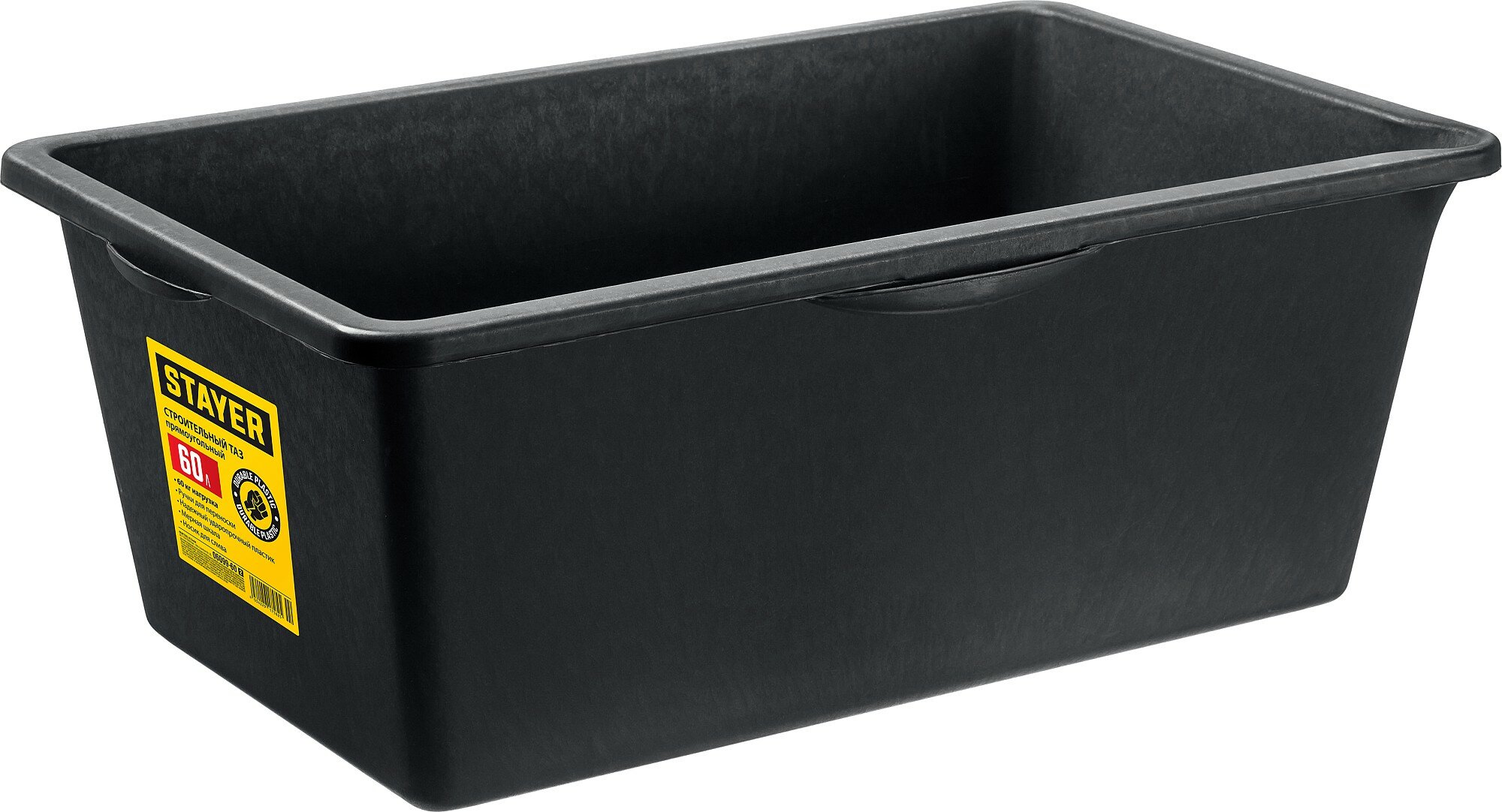 ЗУБР 90 л, первичный высокопрочный пластик, усиленный прямоугольный строительный таз (06096-90)