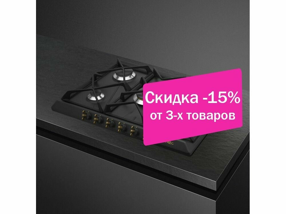 Варочная панель Smeg Газ, Coloniale,газовая 70 см, антрацит/ фурнитура латунь
