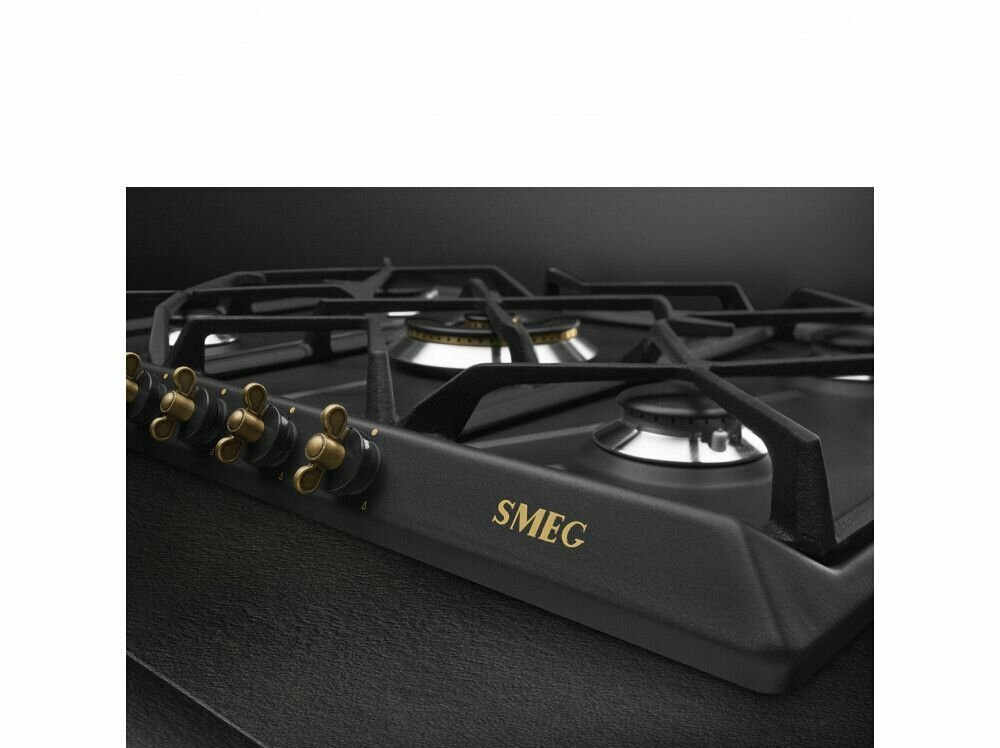 Варочная панель Smeg Газ, Coloniale,газовая 70 см, антрацит/ фурнитура латунь