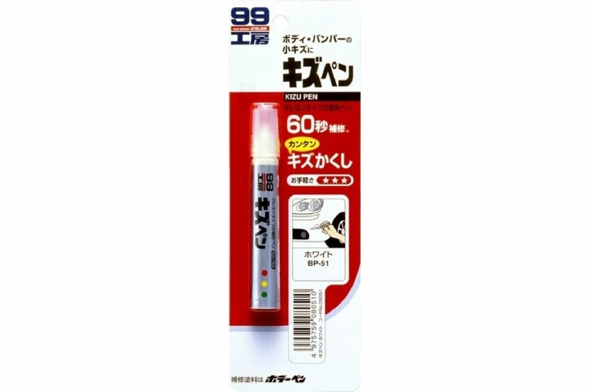 Краска-карандаш для ремонта сколов и царапин Soft 99 Kizu Pen BP-51, белая (перламутровая), 20г, арт. 08051
