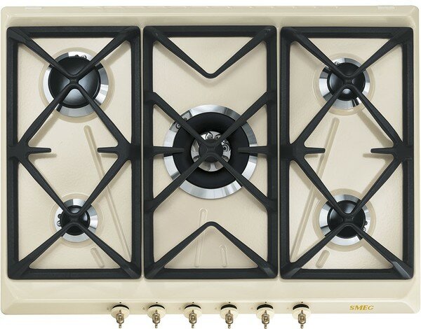 Газовая варочная панель, 70 см, кремовый, Smeg SRV876POGH