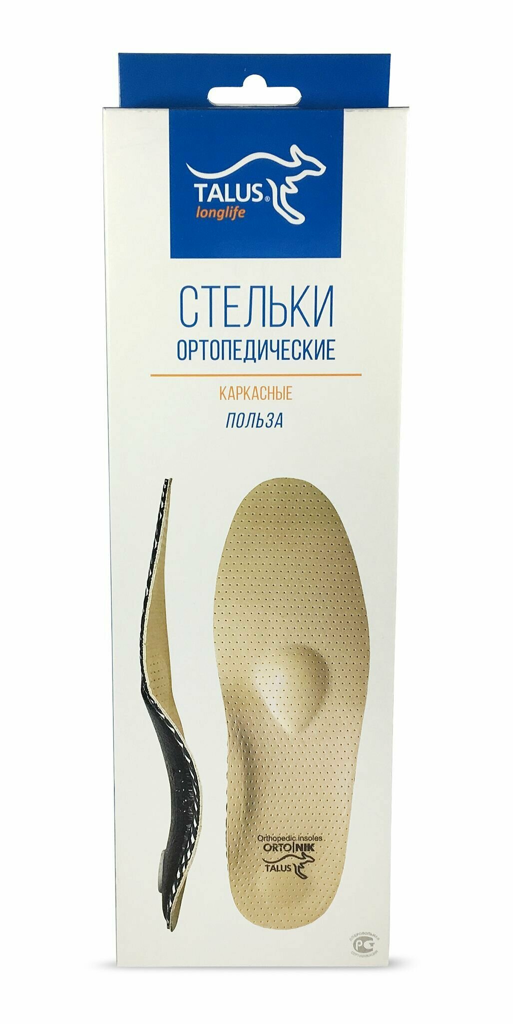 Ортопедические стельки Talus каркасные Польза, размер 46 (длина 29,5 см)