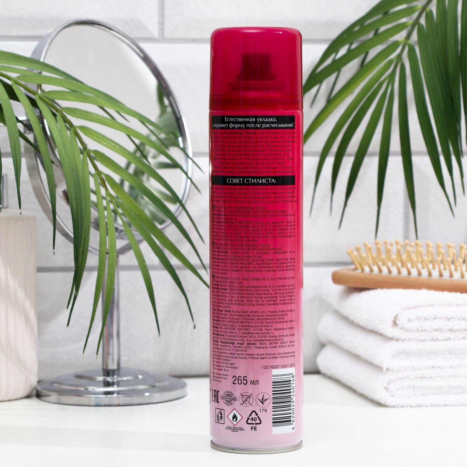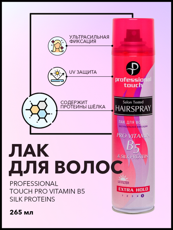 Лак для волос Professional Touch Pro Vitamin B5&Silk Protein, экстрасильная фиксация, 265мл