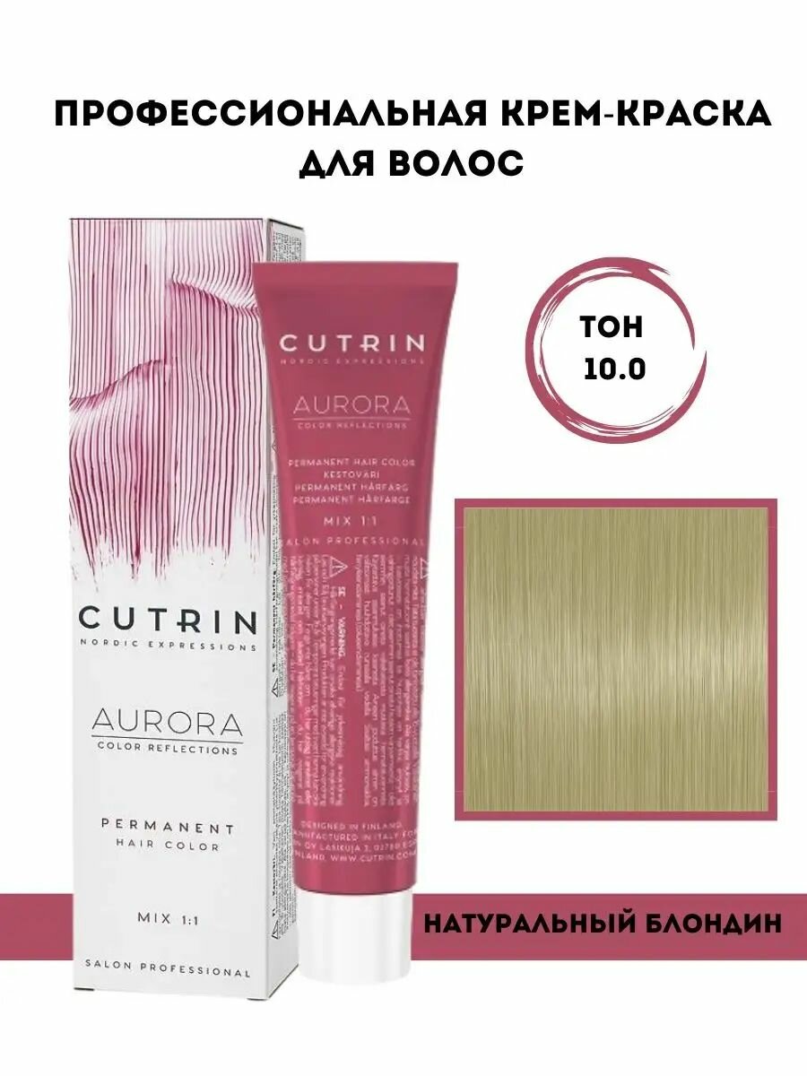 Купить CUTRIN Крем-краска для волос AURORA COLOR REFLECTION 10.0 Натуральный блондин / Стойкая крем-краска для волос Aurora Color Reflection 60 мл