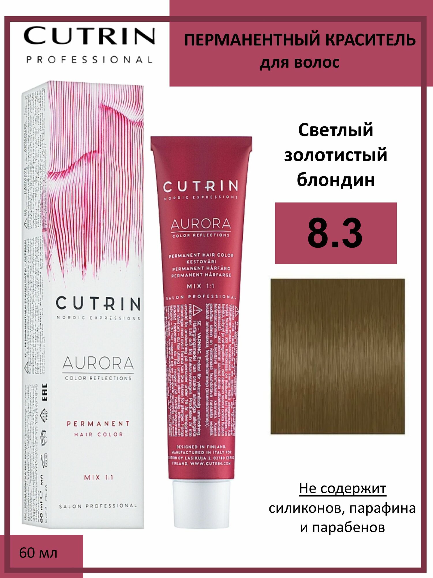 Купить Крем-краска CUTRIN AURORA \ 8.3 Светлый золотистый блондин, для волос, 60 мл