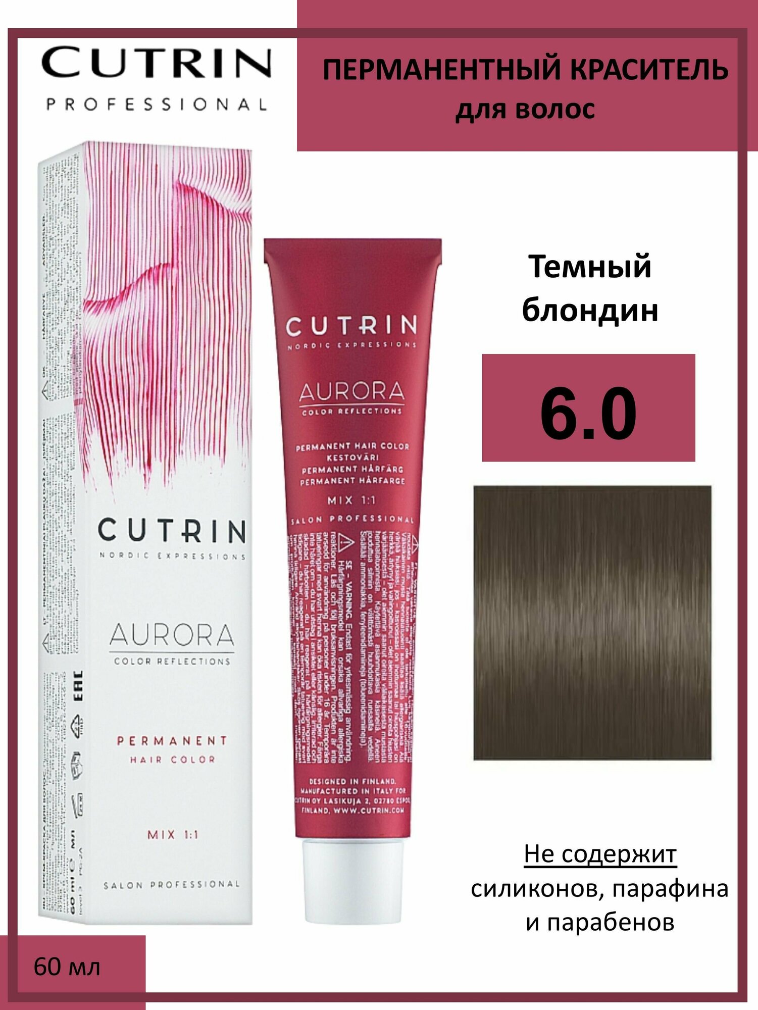 Купить Крем-краска CUTRIN AURORA \ 6.0 Темный блондин, для волос, 60 мл