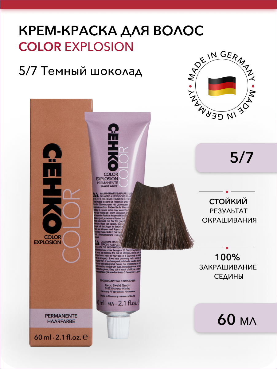 Профессиональная краска для волос 5/7 Темный шоколад, коричневая, стойкая, перманентная, для седых волос, 60 мл, C:EHKO COLOR EXPLOSION