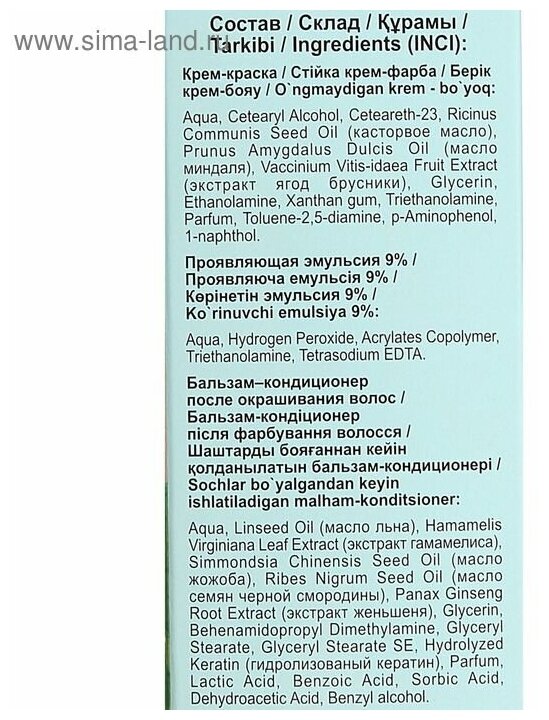 | Плюсы: | Без аммиака, не сжигает волосы. Отличная уходовая косметика для волос. |