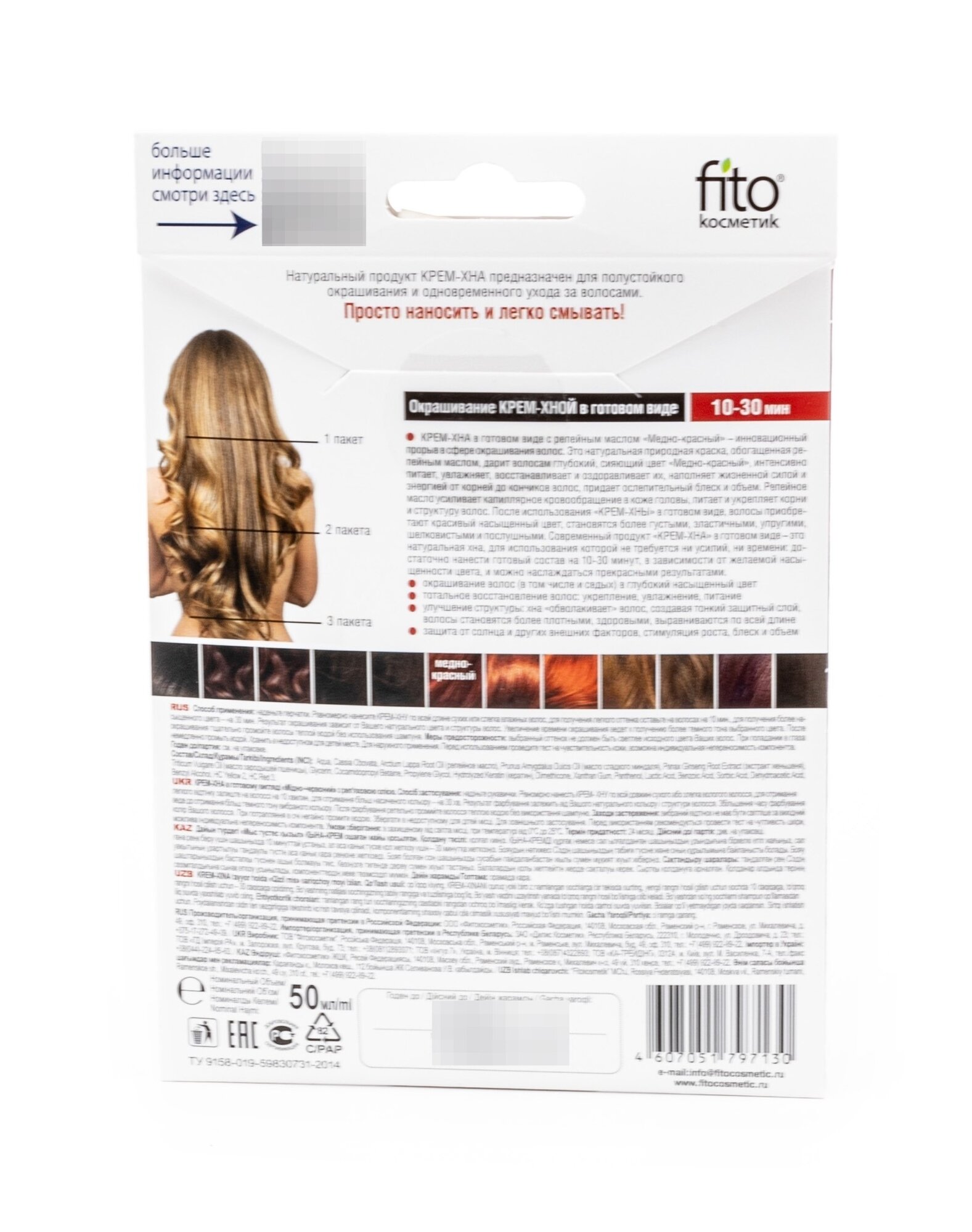Купить Fitoкосметик Крем-Хна в готовом виде Медно-красный с репейным маслом 50мл