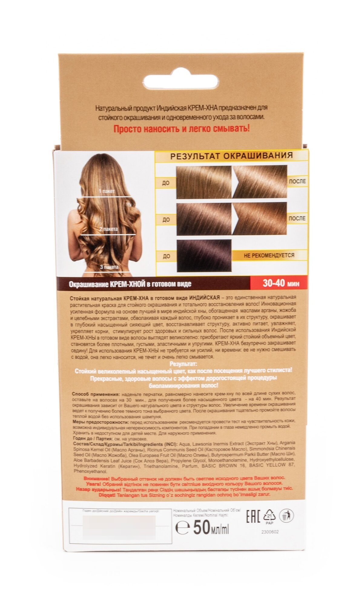 Крем-хна Индийская в готовом виде тон 5.46 Ярко-рыжий 50 мл
