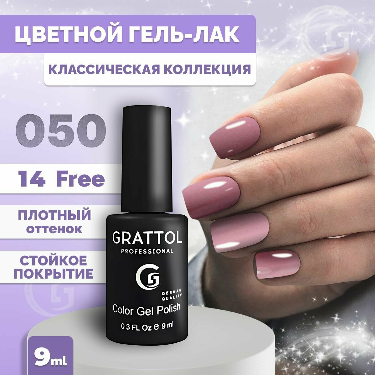 GRATTOL, Гель-лак тон №24, Dusty Purple, 9 мл