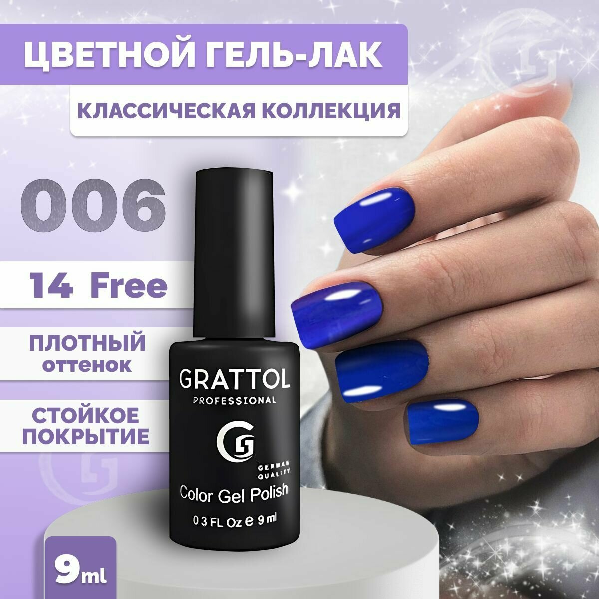 GRATTOL, Гель-лак тон №07, Blue Violet, 9 мл