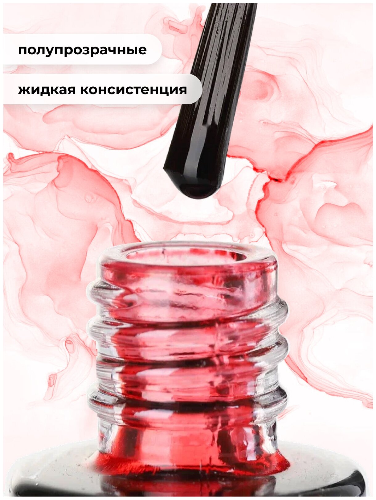 Акварельные капли для маникюра Serebro №1 для дизайна ногтей, красный, 4,5 мл